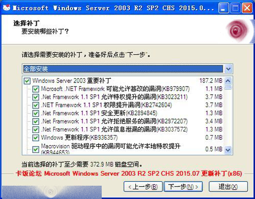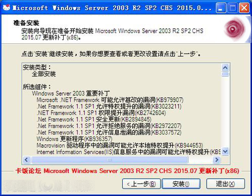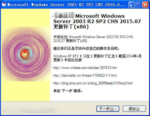 Microsoft Windows Server 2003 R2 SP2 CHS 2015.07 更新补丁(x86)网盘下载:http://pan.baidu.com/s/1ntGcy9b