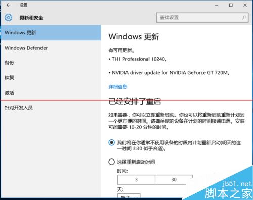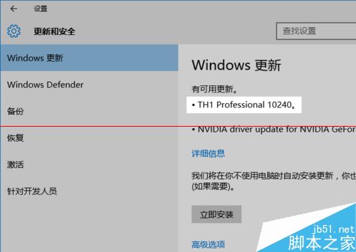 1、检查升级:开始-->设置-->更新和安全,可以看到有 “TH1 Professional 10240”的升级提示,点击“立即安装”。