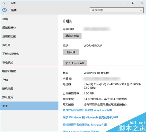 11、“开始”-->“设置”-->“系统”-->“关于”,查看系统信息,已经是“Windows 10 专业版”。桌面上的 “Insider Preview”的水印字也没有了。