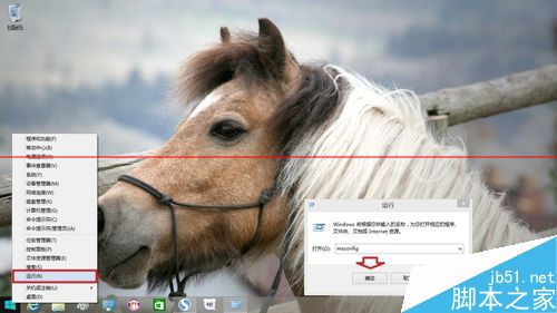 1、使用鼠标右键点击屏幕左下方的开始图标→Run→输入:msconfig→确定
