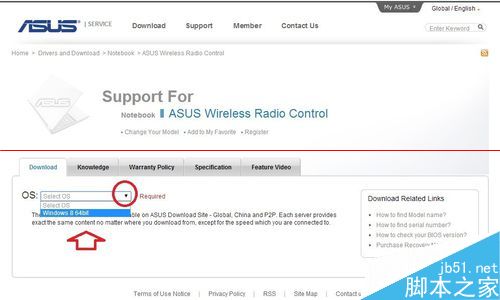 7、这是品牌机的官网,虽然是英文网站,只要点选下拉箭头▼ 找到匹配的操作系统即可。
