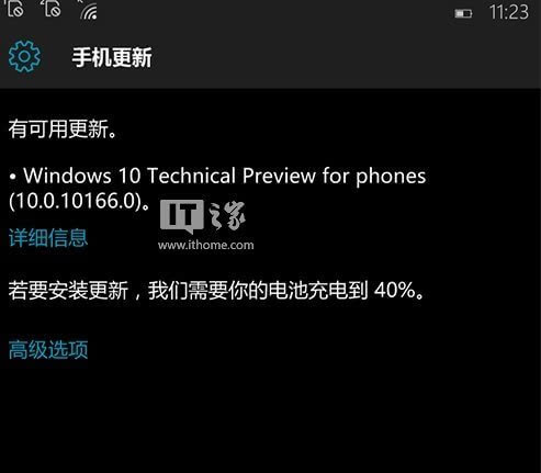 因此在Win10 Mobile预览版10166中,微软还修复了10149升级安装更新不能提醒需要40%及以上电量的问题。