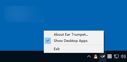 ▲显示桌面应用 这是一款Win32桌面应用,安装后会在任务栏显示控制图标,他不会替代Win10自带的音量控制器。该工具默认只显示Modern应用,在右键菜单中勾选“Show Desktop Apps”后可显示传统桌面应用。 该应用已开放源代码,源代码被托管在GitHub,感兴趣的朋友可点此查看。 Win10音量控制工具Ear Trumpet下载