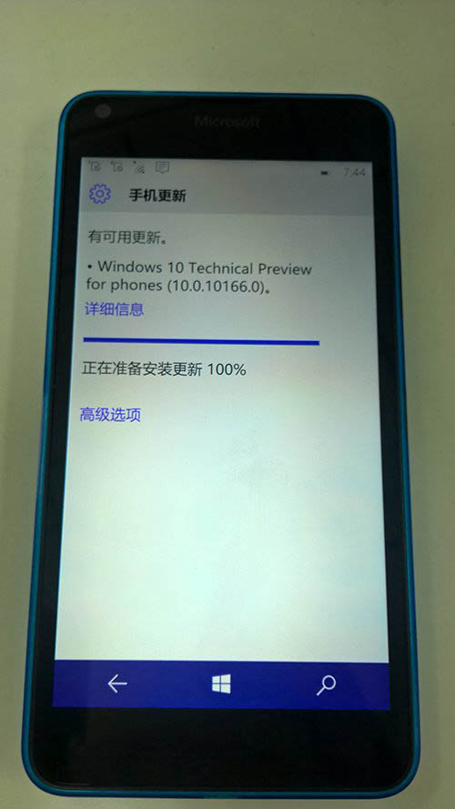 ▲很快迎来正在准备安装更新100%,注意这里也要等上一段时间。时间标记,7:44