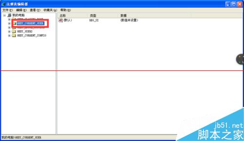 3、【注册表编辑器】的窗口,找到“找到HKEY_CURRENT_USER”。