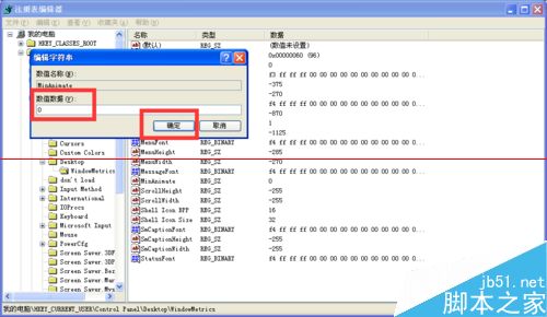 5、WindowMetrics在右边找到“MinAnimate”,鼠标右键点击修改。