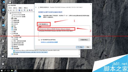 5、勾选-显示兼容硬件(没打勾的打上勾就可以)-选择有线网卡的驱动(就是Q开头的那个驱动如图。)