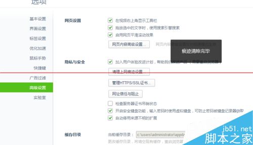 步骤一:浏览器中选择“高级选项”——“清除数据”全选~——点击“立即清理”