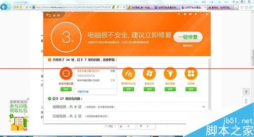 步骤二:打开360安全卫士,一键修复,如下图,点击修复。