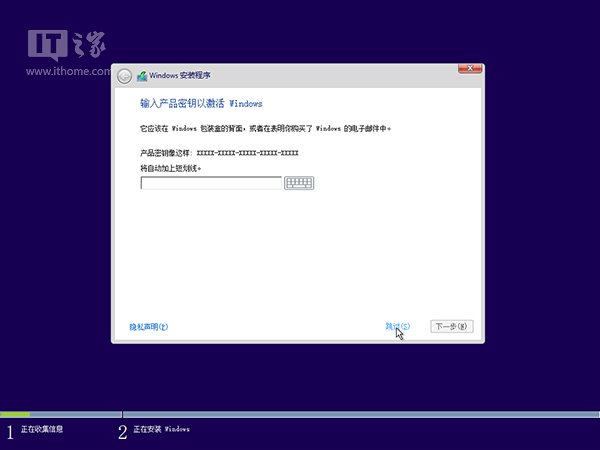 ▲这里可输入密钥,如果你觉得打字很麻烦可以跳过此步,我这里也选择跳过