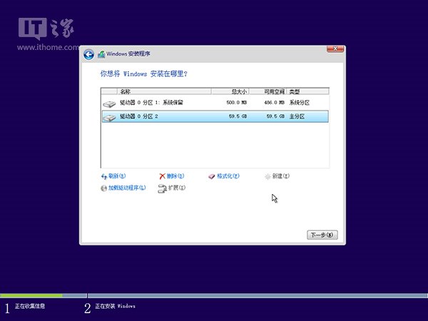 ▲这里选择要安装到的分区,如果你想干净安装,可格式化目标分区(注意,格式化会删除这个分区所有文件),选好后点“下一步”