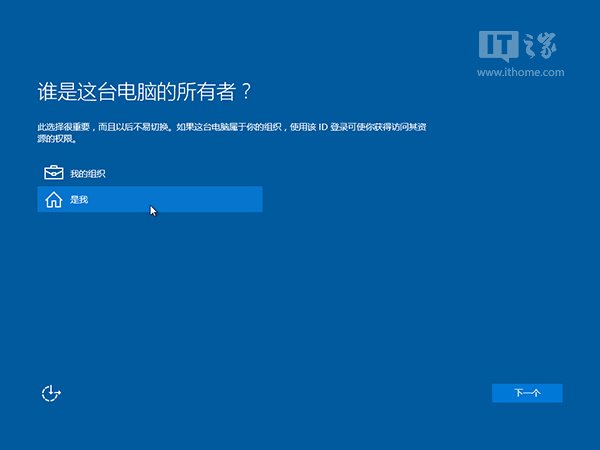 ▲电脑所有者。个人电脑选择“是我”,点“下一个”