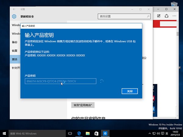 ▲在这里输入8N67H-M3CY9-QT7C4-2TR7M-TXYCV(专业版密钥),直接复制粘贴即可。