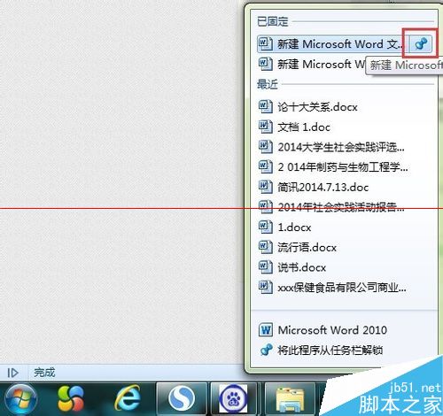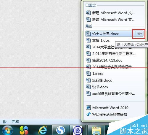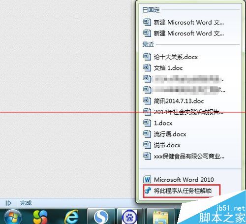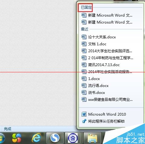 3、用鼠标的右键点击任务栏里的应用程序,会出现两个部分一个是已固定的文件,及以后总会存在的文件。