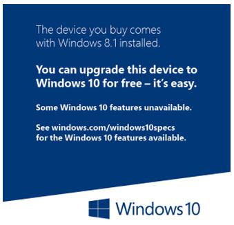 另外,和过往的情况一样,微软也为OEM制造商准备了一张贴纸,如上图所示:有这样标识的设备也就意味着你在购买过后就可升级到Windows 10。