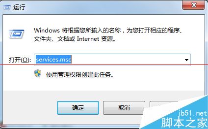 2、在弹出的运行对话框输入 services.msc 命令,点击确定进入服务项界面