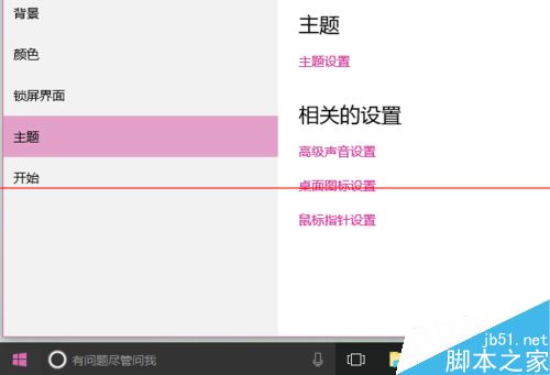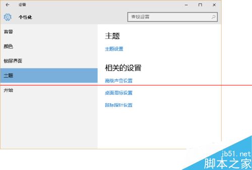 3、在接下来弹出的“个性化”设置窗口里,我们在左侧单击“主题”,然后在右侧点击“主题设置”。