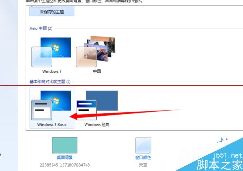 2、进入桌面背景选项界面,找到【Windows7 Basic】背景样式,双击进行应用。
