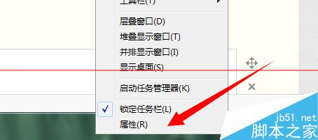 关闭Aero特效;1、右键点击桌面下方【任务栏空白区域】,选择属性选项
