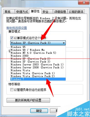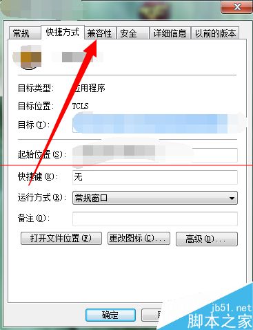 3、进入兼容性设置界面,勾选【使用兼容性运行程序】,然后在下方选项中选择【win7】,点击确定问题解决