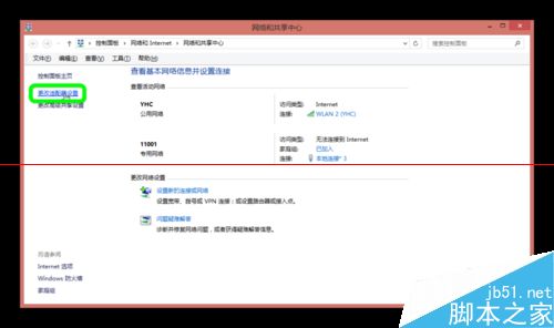 2、然后,在网络共享中心界面点击“更改适配器设置”。
