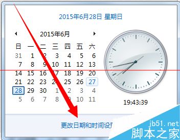 2、在弹出的时间对话框,点击下方【更改日期和时间设置】