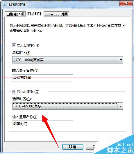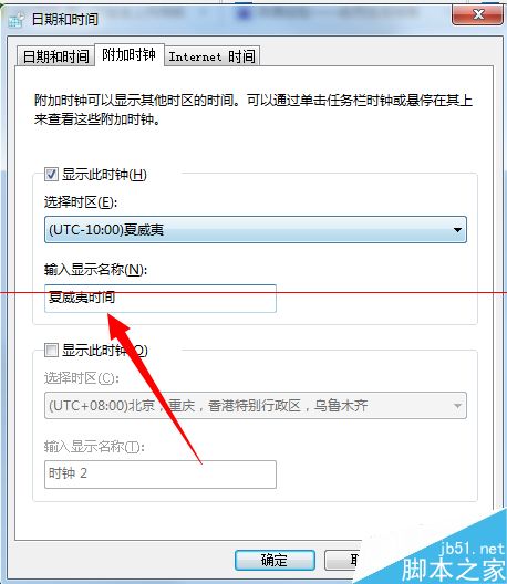 8、命名完成,点击确定选项,返回时间栏可以看到,当前有两个时钟,一个是本地时钟,一个是夏威夷时钟。