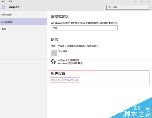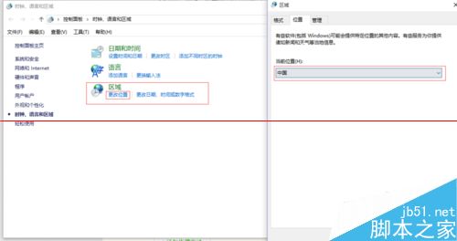 6、退回到时间和语音的界面,点击 其它日期、时间和区域设置 ,点击更改位置,选择中国。点击管理,按照图片红框选择