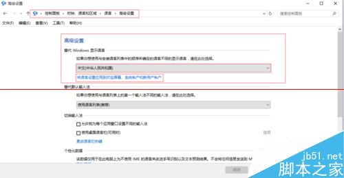 8、返回上层至控制面板-语音-先确定语音首选项是否是中文-然后点击高级选项-替代windows显示语音改为中文-点击下面的蓝字