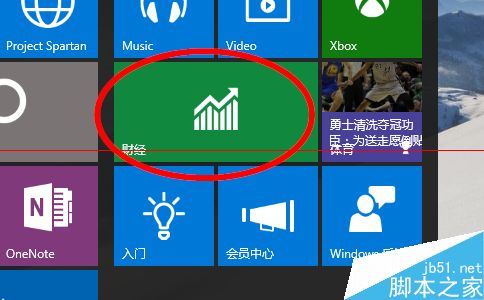 2、进入开始菜单界面,选择一个想要关闭动态磁贴的应用,本文以财经应用为例