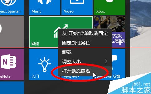 5、如果想从想从新打开滚动消息,则再次点击右键,选择“打开动态磁贴”