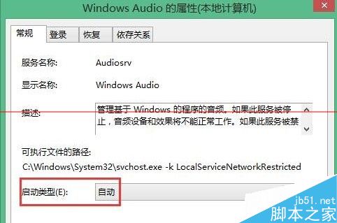 4、最后为了确保以后开机都能够自动运行音频服务,我们仍然在windows audio服务上右键,选择“属性”,然后在设置界面,我们在“启动类型”中选择“自动”,最后点击“确定”即可。