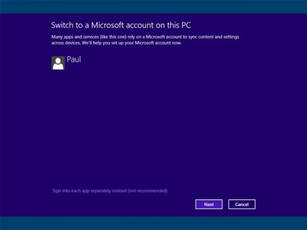 在Paul Thurrott此前发布的博文中,Windows 8/8.1通常需要整合微软帐号(MSA),并非常肯定的写道:“在这里需要使用一个微软帐号”,主要的原因是Windows 8/8.1系统中的很多功能和应用需要帐号进行绑定。