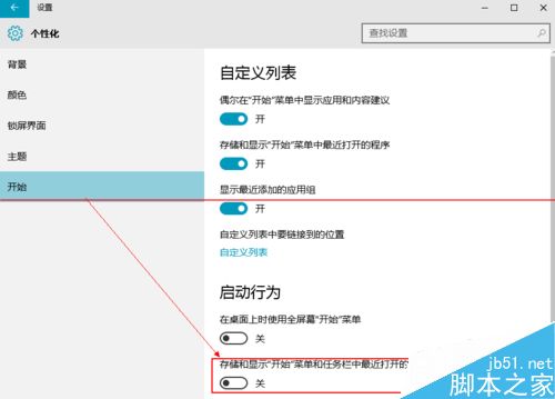 3、在右边栏找到“存储和显示开始菜单和任务栏中最近打开的项目”,直接设置为“关”。如图所示。