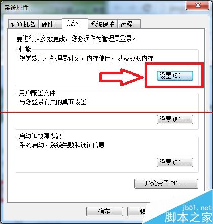 5、选择高级选项卡,点击性能分组框中的设置按钮