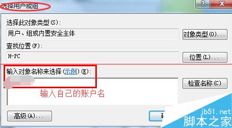 3、输入用户账户的账户名,点击“检查名称(C)”,最后点击确定完成。
