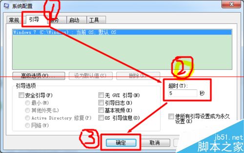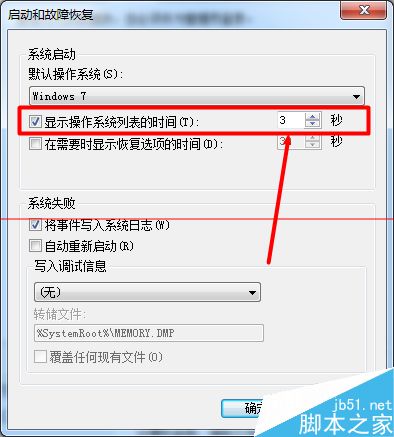 4、在“显示操作系统列表的时间”中,设置等待时间。等待时间一般设置在3~5秒,这样既可以保证启动时间,又可以有充足的时间作出选择。一路确定,即可生效。