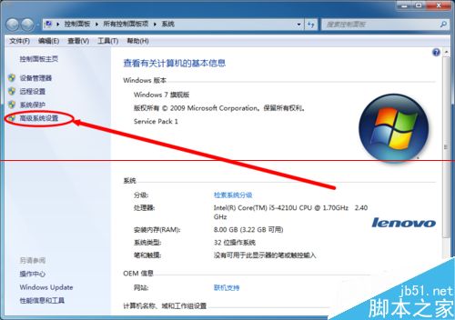 2、此时打开系统属性窗口。点击左边的“高级系统设置”。