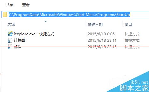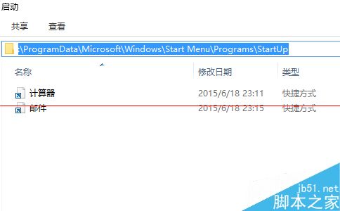 会直接弹出启动项对应的目录,然后像前面方法一样把应用程序快捷方式复制到启动目录
