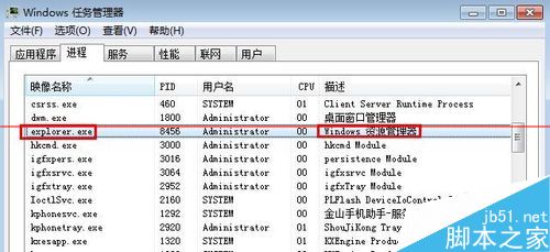 2、打开的任务管理器中点击选择你要关闭的进程。当然这里大家可以看看每个进程的具体作用,大家将描述那里拉大一些就可以看到每个进程的一些介绍和作用。大家关闭进程要非常注意,有些系统核心进程千万不要关闭,比如这里的explorer.exe【windows资源管理器】,假如把这个关闭你电脑的桌面都不显示!所以要注意哦!