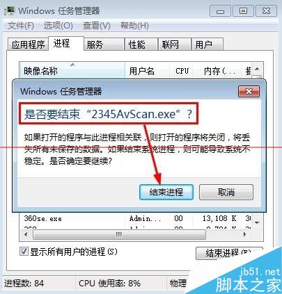 4、出现的提示窗口中我们确定即可!这样通常就可以关闭一些想要关闭的进程。