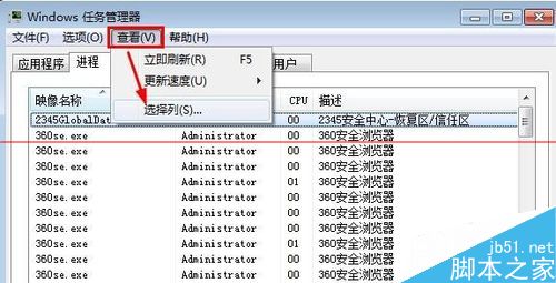 10、其实我们还可以试试下面这种方法,在任务管理器中点击查看菜单,然后点击选择列。