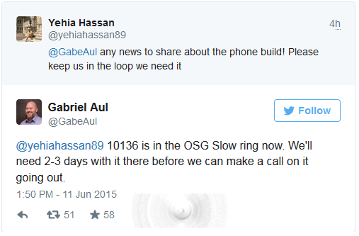 微软之前在5月14日提供了Windows 10 Mobile build 10080给内测者进行测试,结果发现了其中存在许多新的Bug。Gabe Aul也表示,他们需要两三天时间进行内部测试,才能在下周推出Windows 10 Mobile build 10136。