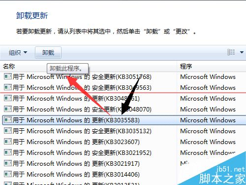 3、上面的关闭的方法重启后又会出现,怎么来个彻底一点的解决方法呢?因为获取Windows10升级图标是从系统更新出来的,因此也可以从系统更新把TA请走。在我的电脑点击【卸载程序】-【查看所有更新】,找到KB3035583卸载就解决了问题。