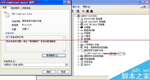 4、在鼠标和其他指针设备下面选项中,双击第一个打开属性设置窗口。