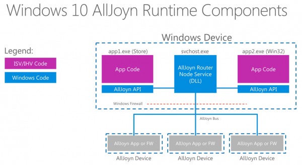 微软去年十一月宣布Windows 10中将会加入一个叫做AllJoyn的开源框架,帮助智能设备实现互操作。AllJoyn由AllSeen联盟开发,该联盟下辖150多家公司,包括伊莱克斯、霍尼韦尔、LG和高通等。他们的目标是联合起来提供一个开放的物联网互操作标准。