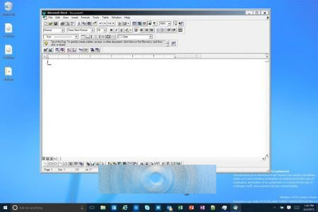 今天著名的光头哥Gabe Aul破天荒地在推特上上传了两张Windows build 10136的截图,比目前最新的build 10130版本要新,不过从截图来看build 10136似乎并没有添加新特性,而只是对系统托盘箭头和文件资源管理器图标进行了更新。其中一张截图显示,Word 95的的确确是可以在Windows 10上运行的。另一个细节就是,在build 10136中还是没看到Edge浏览器的图标,依旧是之前的Spartan图标。