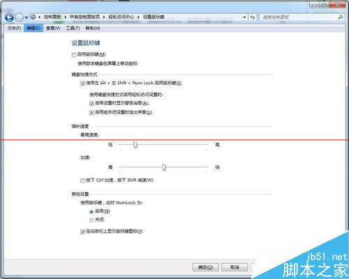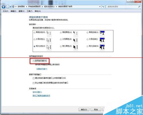 5、最后用方向键选择 “启用鼠标键”按Alt+M键 选中复选框