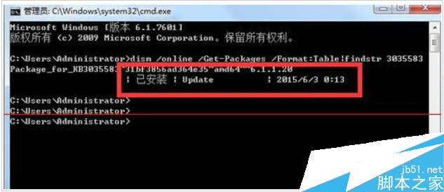 dism /online /Get-Packages /Format:Table|findstr 3035583 并按回车