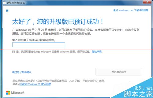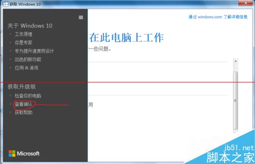 5、点击上方图中的按键后,会在当前窗口左侧出现下拉窗口,还是没找到填写邮件的地方,死心吧。选择<查看确认>来确认是否完成了预订。在这个窗口还可以检测软硬件是否满足升级要求。